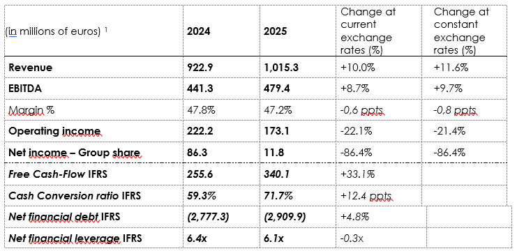 - Revenue was up +10.0% in 2025 and exceeded 1 billion euros for the first time, standing at 1,015 million euros.