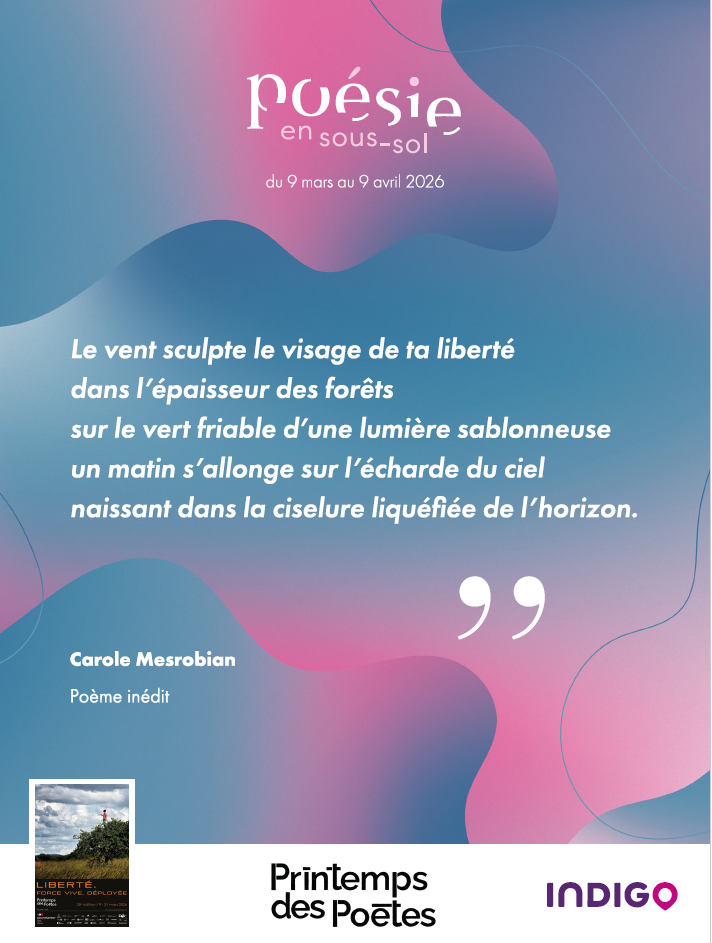 Pour cette édition 2026 du Printemps des Poètes placée sous le thème « La Liberté. Force vive, déployée », INDIGO installe 3 000 affiches poétiques dans 500 parkings et distribue 5 000 recueils de poésies, sélectionnées par l’association du Printemps des Poètes, dans une centaine de boutiques INDIGO.